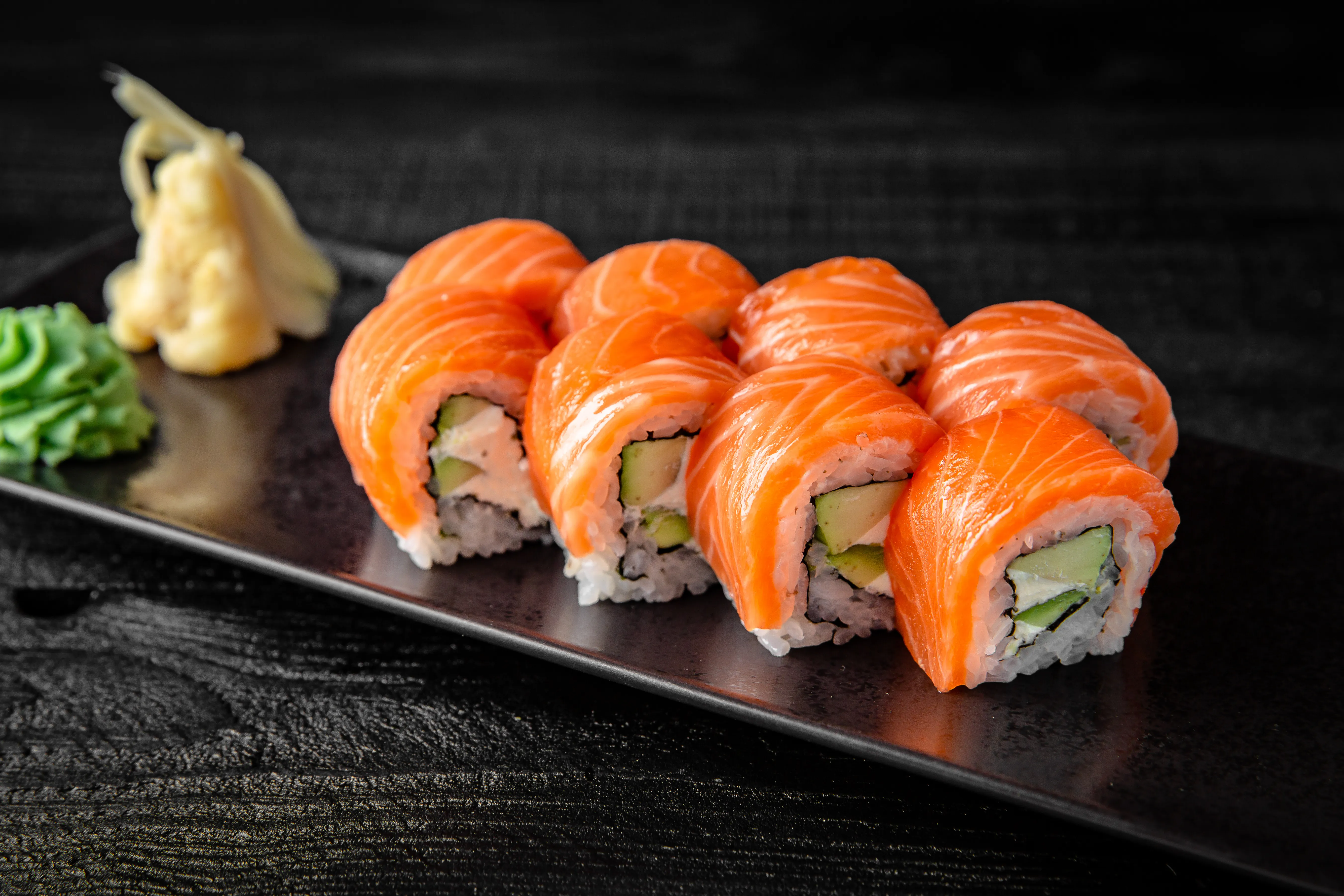 In: Crab Meat, Cucumber, Avocado. Out: White Fish Torched With Sweet, White Sauce.